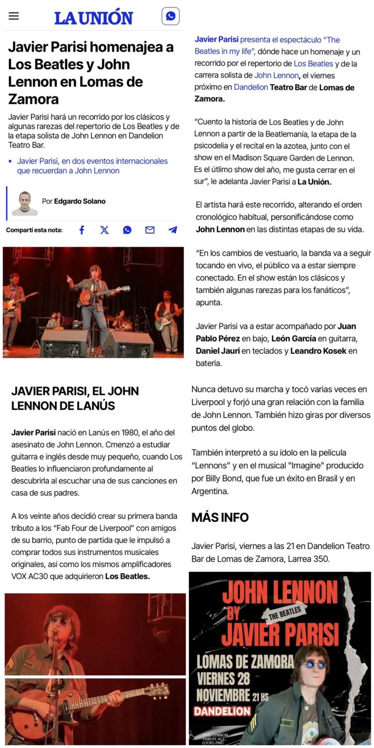 Beatles cavern club recognizes the cultural importance of Javier Parisi for brazilian beatlemania